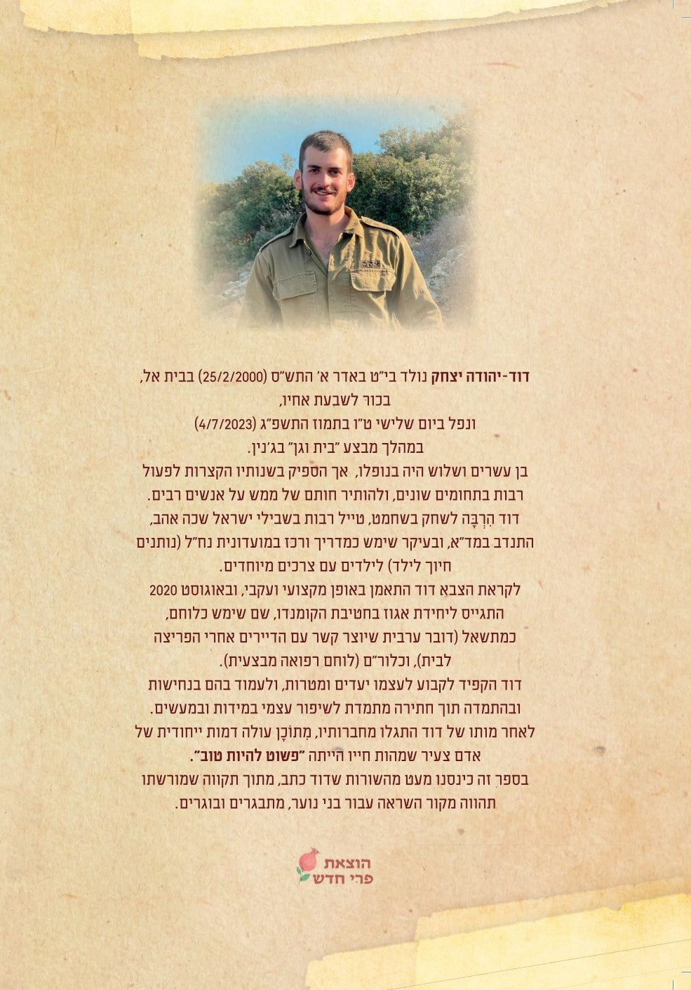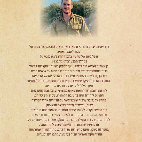 מִתוֹכָן עולה דמות ייחודית של אדם צעיר שמהות חייו הייתה "פשוט להיות טוב".